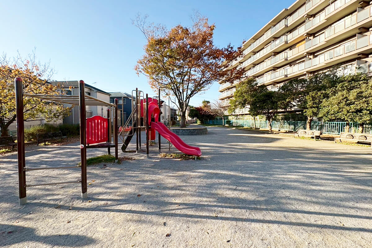 徒歩4分で行ける一番近い公園。滑り台、ロッキング遊具、うんてい等の遊具が揃っている他、桜の木がシンボリックな憩いのスポット。