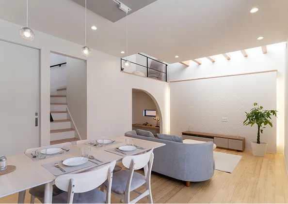 家族が集う開放的なリビングを中心に、プライベートも大切にできる自由な個室空間、さらにカフェ気分を味わえるロジアや愛車をカスタムできるガレージまで。