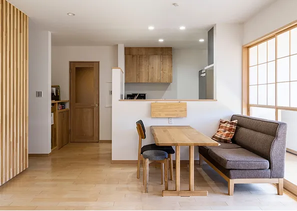 木製のエレメントをふんだんに使い、ぬくもりのあるスタイル。