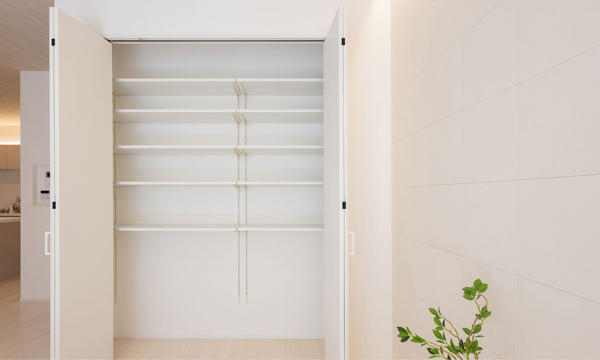 収納スペースの活用で生活感を減らした、男女問わず選ばれる今流行のテイストです。