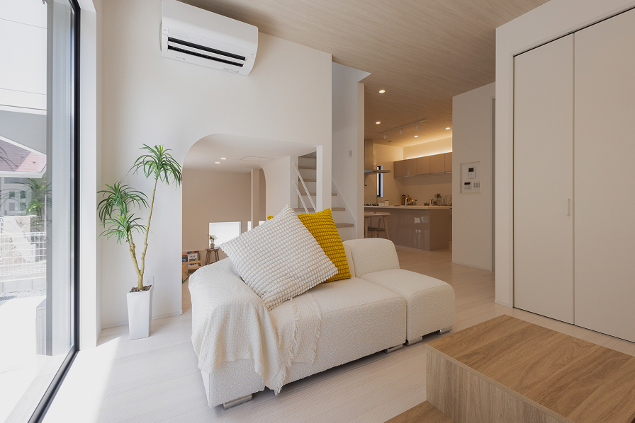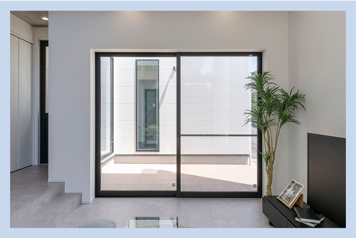 高さ2.2m×幅2.53mの開放的な掃き出し窓が大きな外の光を取りこむことによって明るく開放的な部屋になります。