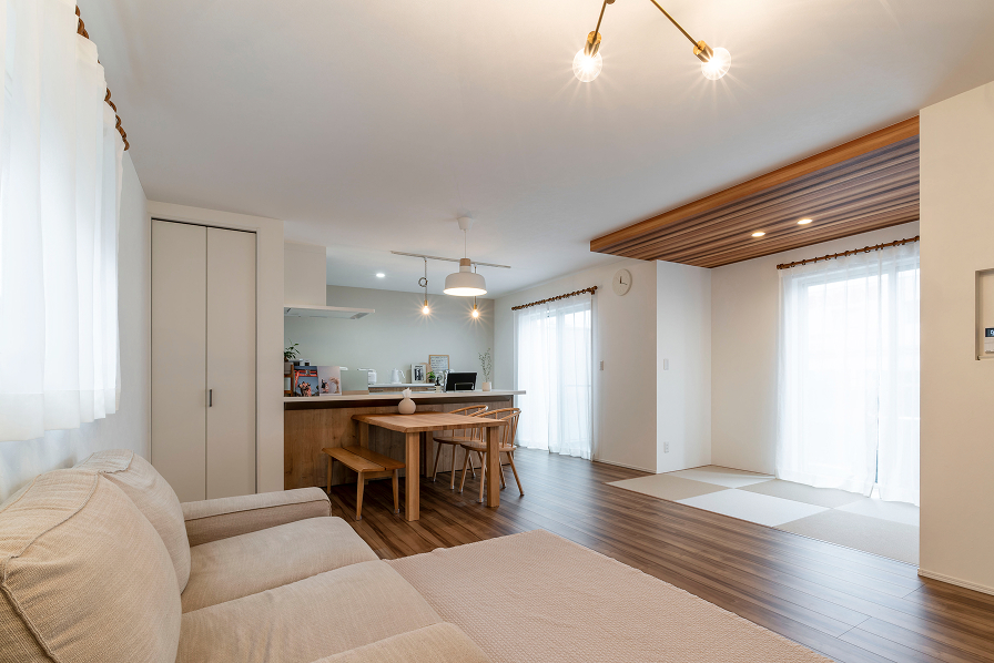 天井を高くすることにより、解放的で心地よい空間を演出します。